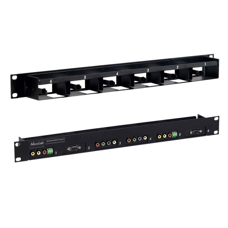 Шасси для установки 6 удлинителей, спроектировано как решение, позволяющее устанавливать любую комбинацию из шести (6) удлинителей MuxLab в 19-дюймовую рековую стойку. Удлинители могут быть размещены любым образом: позволяя вывести интерфейсы RJ45 вперед или назад, в зависимости места размещения. Каждый удлинитель защелкивается на месте и крепко удерживается пружинным фиксатором. Конструкция с одним корпусом упрощает установку и обслуживание устройств. Решение не содержит частей, которые могут быть потеряны или заменены.
